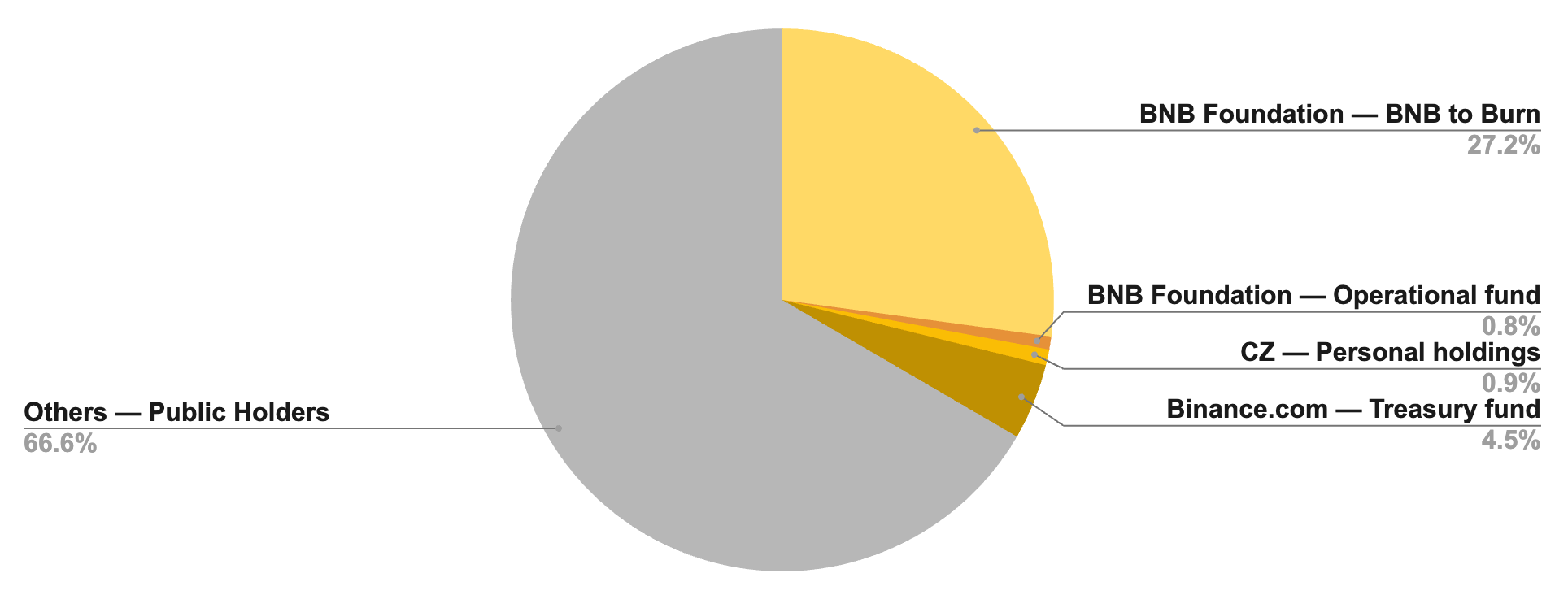 Figure 8: BNB distribution - decentralized & transparent (~67% public; ~27% burn; CZ <1%)