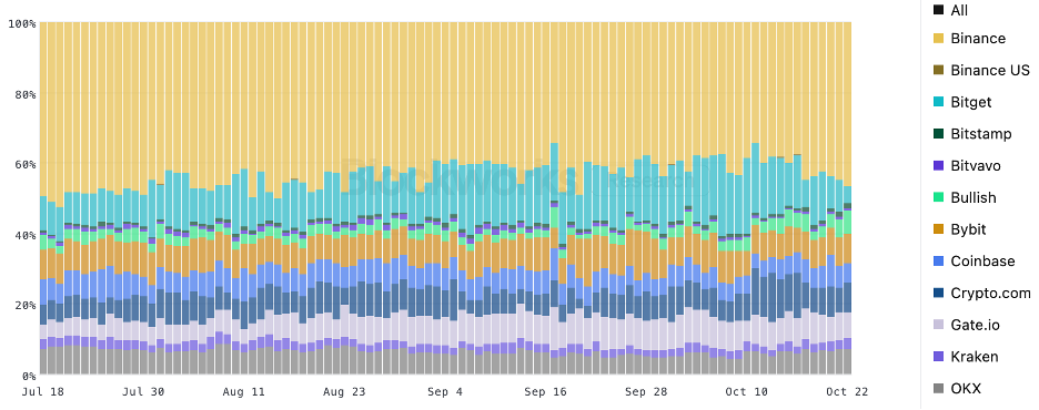 Figure 6: Binance captures around 50% of the total CEX spot market share and is positioned to be a primary gateway for Web3
